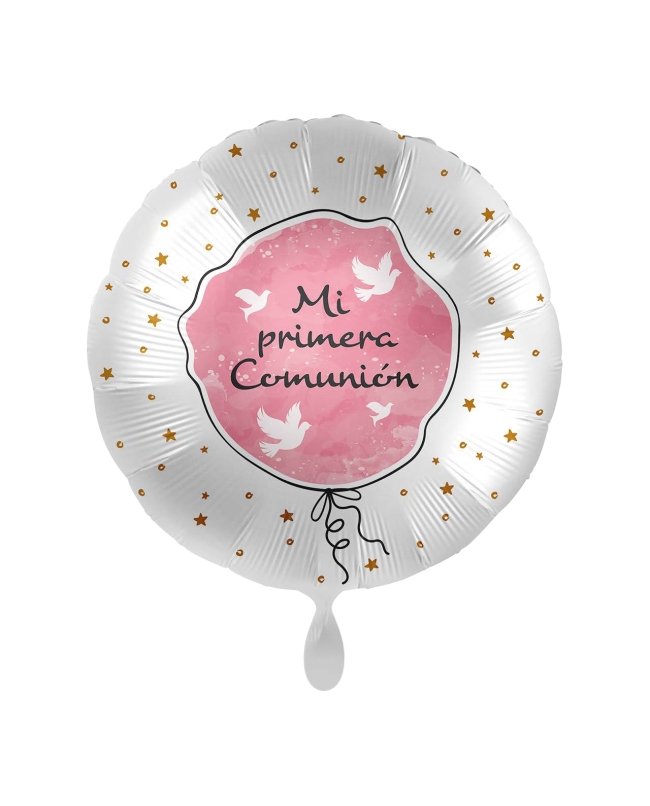 Mi primera Comunión fondo rosa con palomas